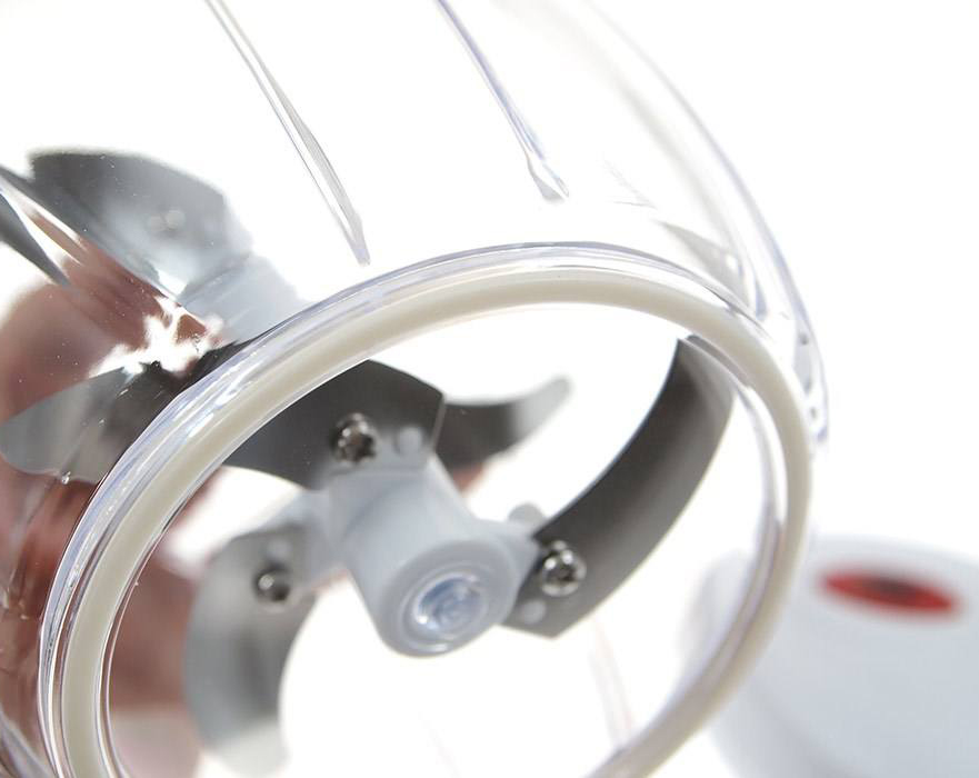 ارتفاع این محصول 11 سانتیمتر و قطر دهانه آن 14 سانتیمتر میباشد. جنس بدنه آن از پلاستیک فشرده با کیفیت بسیار بالا است و وزنی معادل 270 گرم دارد. این کالا دارای دو کاربری مختلف به عنوان خردکن و همزن میباشد. این محصول دارای 5 تیغه فلزی ضد زنگ است که فوق العاده تیغ هستند و در مرور زمان کند نمیشوند و گیر نمیکنند. این خردکن در رنگ قرمز ساخته شده و زیر کاسه آن یک نوار لاستیکی تعبیه شده که موجب میشود به راحتی روی سطح ثابت بماند و سر نخورد.